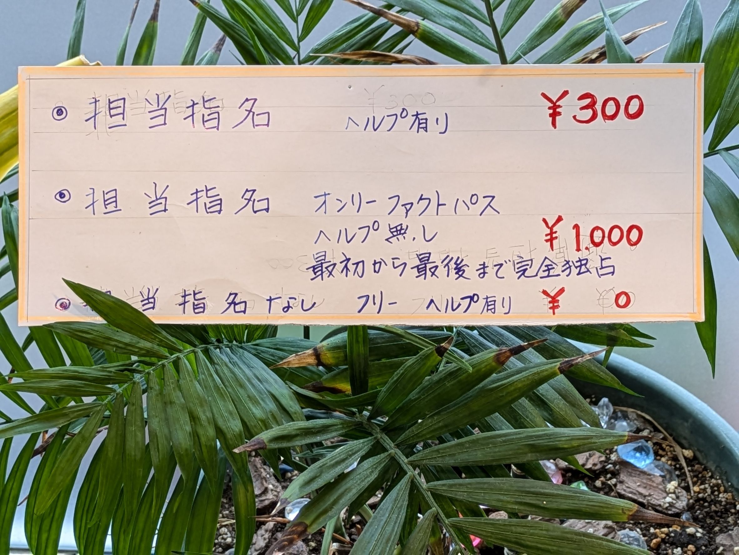 ※画像では指名料300円ですが、現在は300円〜500円となります。